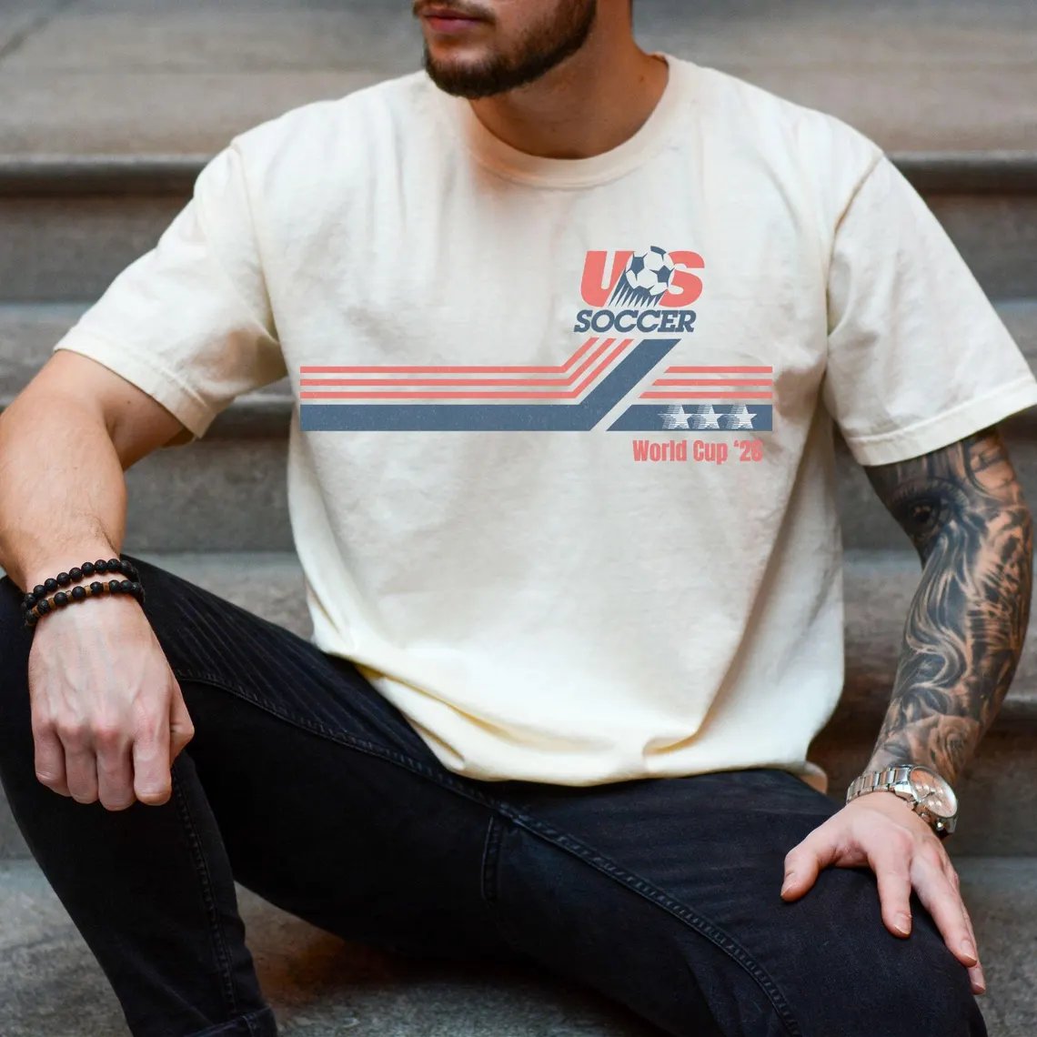 The Vintage US Soccer World Cup 2026 T-Shirt is a retro Comfort Colors graphic tee celebrating the United States as a 2026 FIFA World Cup co‑host. It directly refers to the upcoming 2026 World Cup — the expanded, 48‑team tournament staged across the United States, Canada, and Mexico.
