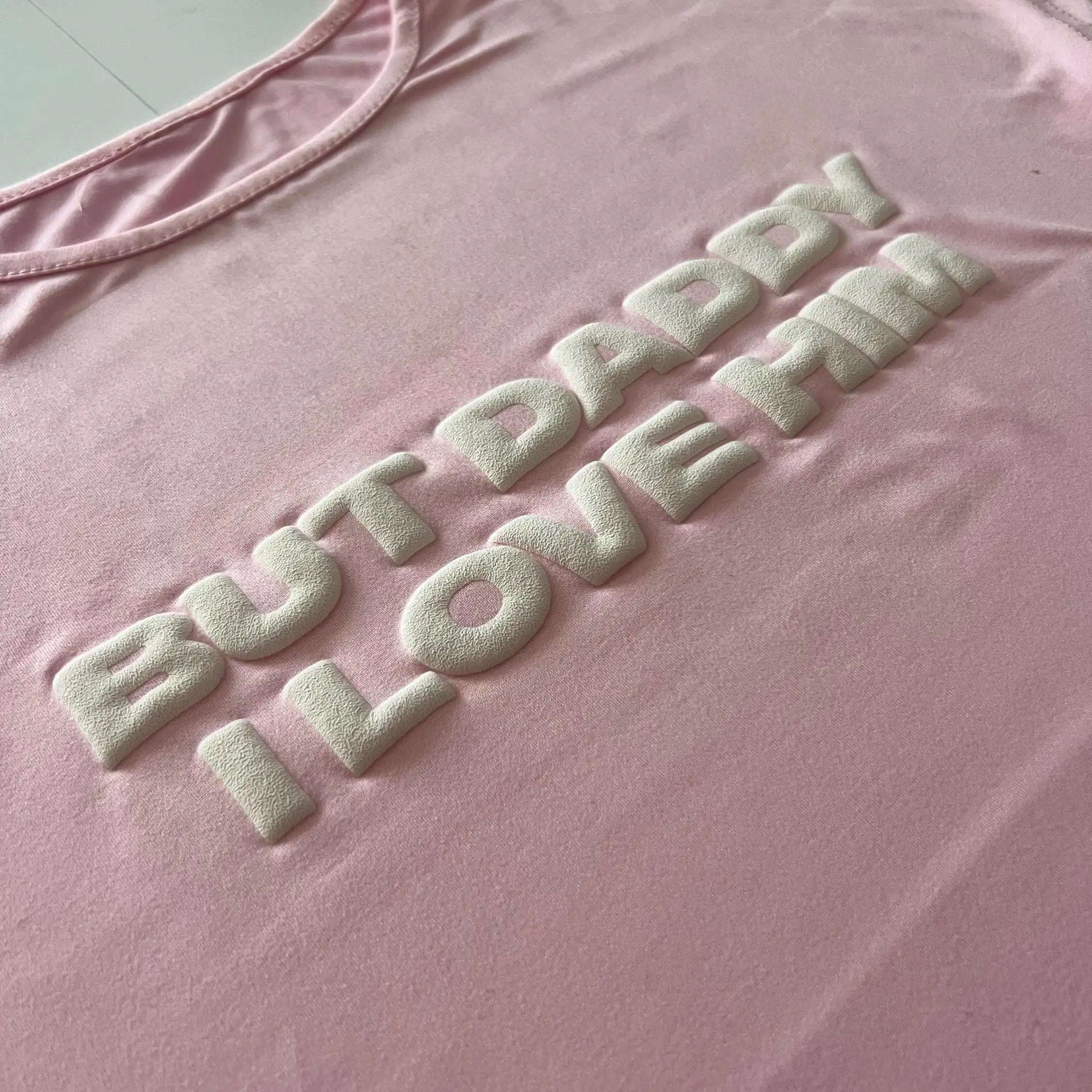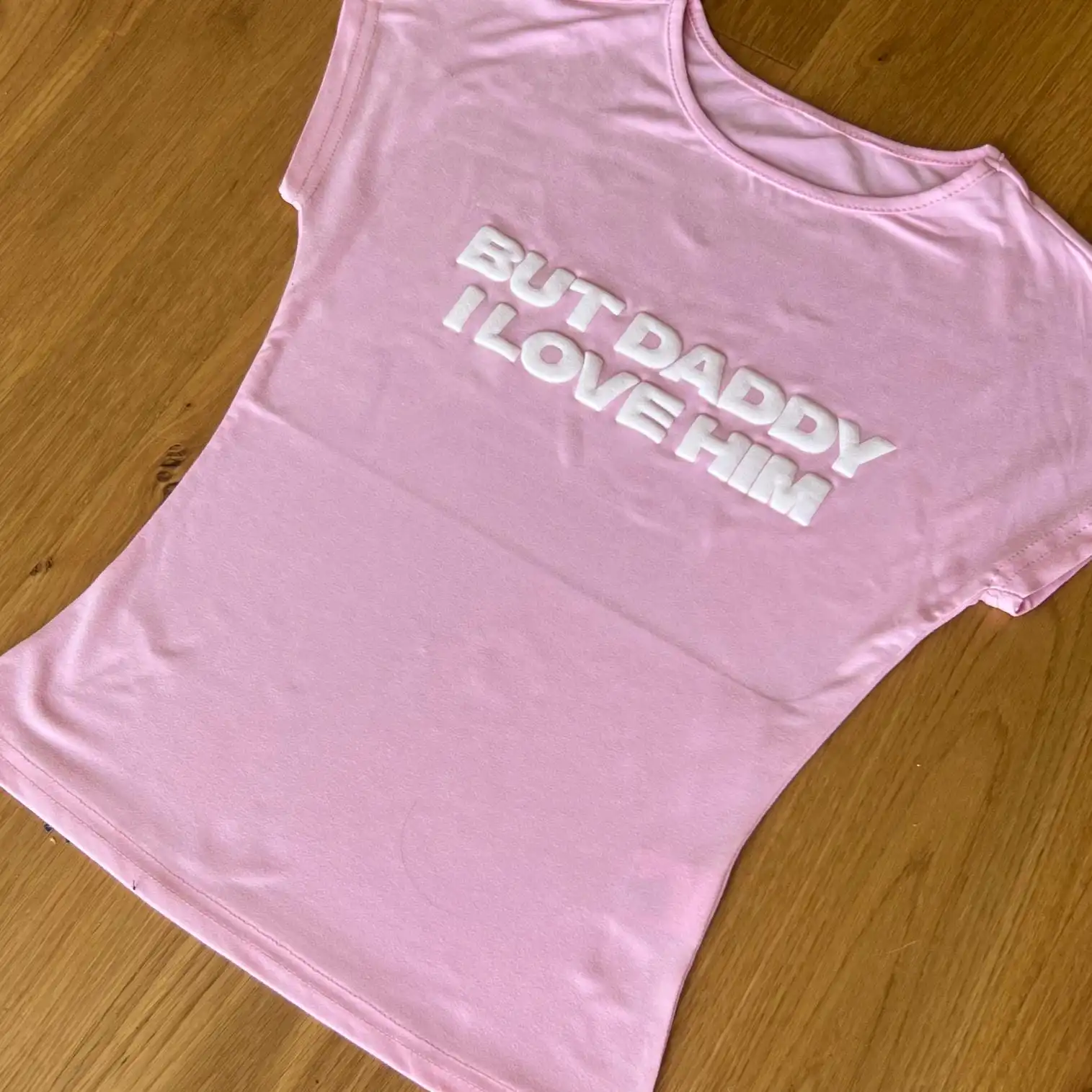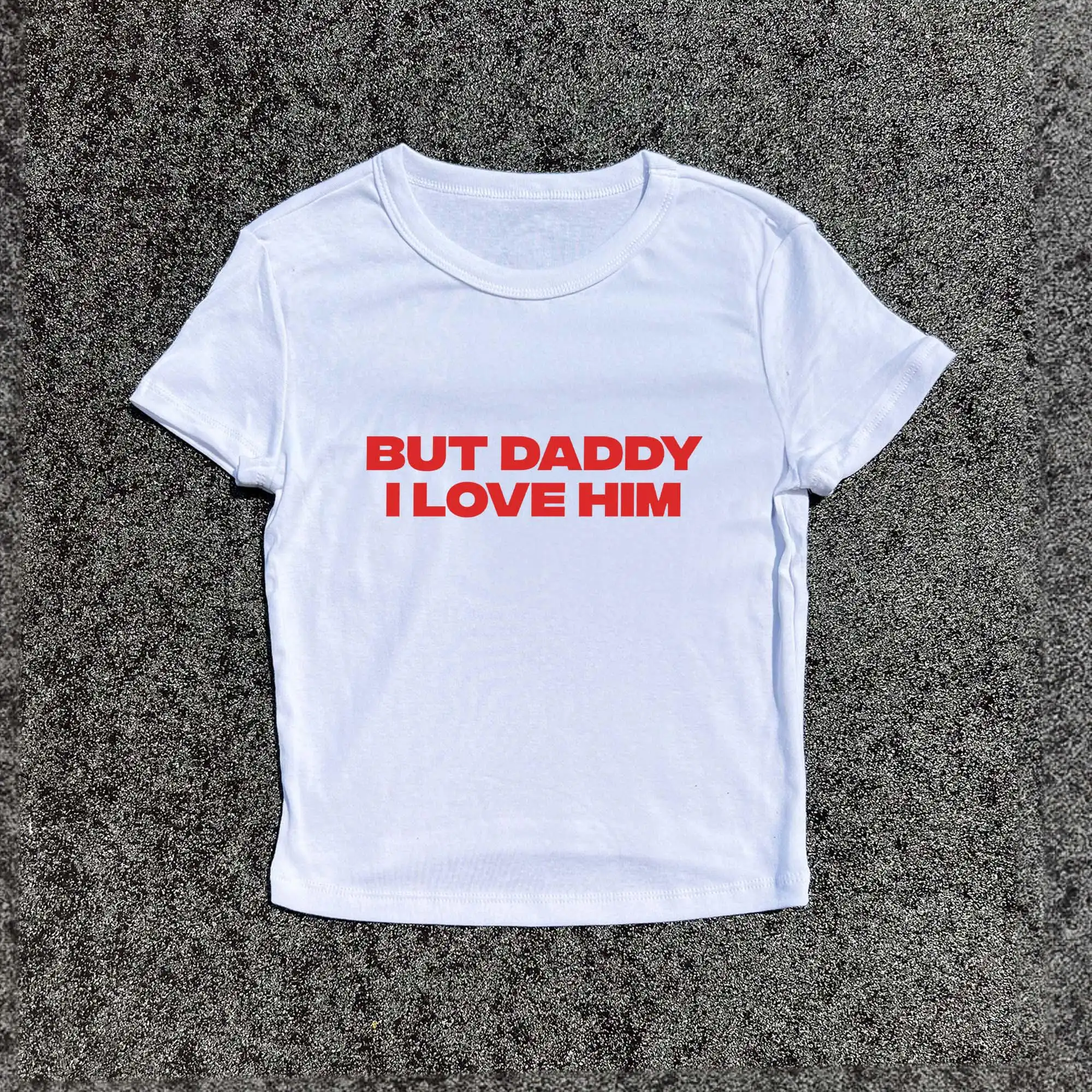 Y2K Baby Fitted Tee – But Daddy I Love Him 3D Puff Print